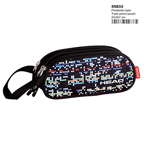 Trousse triple Head PORTATODO Head avec trois départements en parallèle de fermeture éclair et ruban pour suspension produit officiel Head fabriqué par Perona Dimensions : 21.00 x 9.00 x 7.00