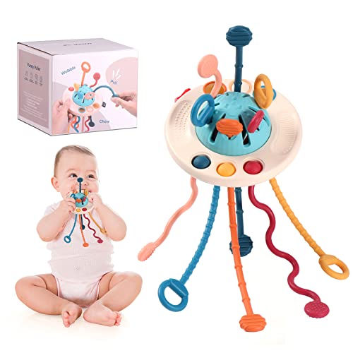 Jouets éducatifs Multi-Sensoriel : Il s’agit d’un jouet sensoriel bien conçu pour les bébés qui font leurs dents et les tout-petits curieux. Couleurs vives pour stimuler la vision de bébé. Exercez la dextérité de la main et favorisez la réponse tactile en tirant le cordon en silicone de haut en bas, en appuyant sur les boutons.