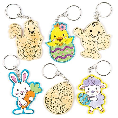 Porte-clés de Pâques en bois à colorier que les enfants pourront fabriquer et exposer – Loisirs créatifs pour enfants spécial Pâques (Lot de 6)