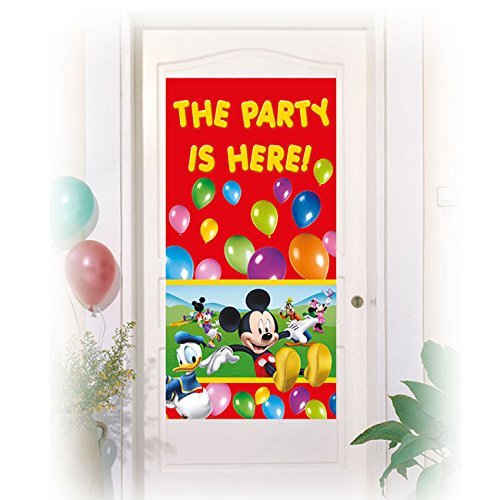 Ce jouet tiré de l’univers du dessin animé Mickey et ses amis a pour nom officiel : Procos 84656 – Décoration de porte Mickey Mouse Club House, 150 x 75 cm, multicolore.