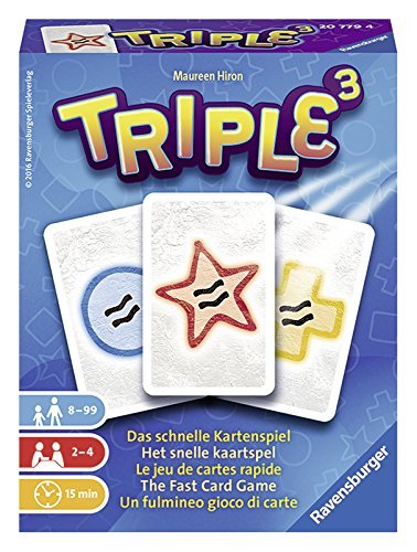 Facile ?Oui… si tout le monde ne jouait pas sur le même carré central… SIMULTANEMENT ! Dans Triple, le jeu est sans cesse modifié. Viiiiiite, trouvez une nouvelle caractéristique pour placer votre prochaine carte!