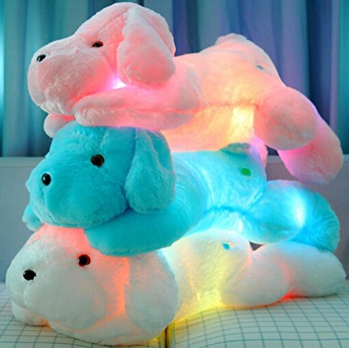 Il ya 7 couleurs qui change. Ce sera très beau la nuit. Les enfants les adoreront. C’est un cadeau incroyable pour l’anniversaire de Noël, Nouvel An, Noël, etc. Vous serez surpris quand vous le recevrez.Taille: 18-Inch/ 45CM. Matériaux: Coton et polyester de pp de qualité. Les animaux farcis lueur chien.