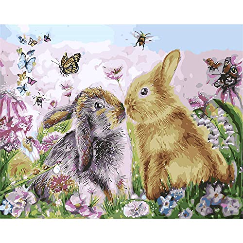 Xpboao DIY Peinture Numero Adulte – Lapin Mignon Animal – kit de Peinture par numéros Acrylique Bricolage – Peinture à l’huile Toile pour Enfant Adulte débutants – 40x50cm – sans Cadre